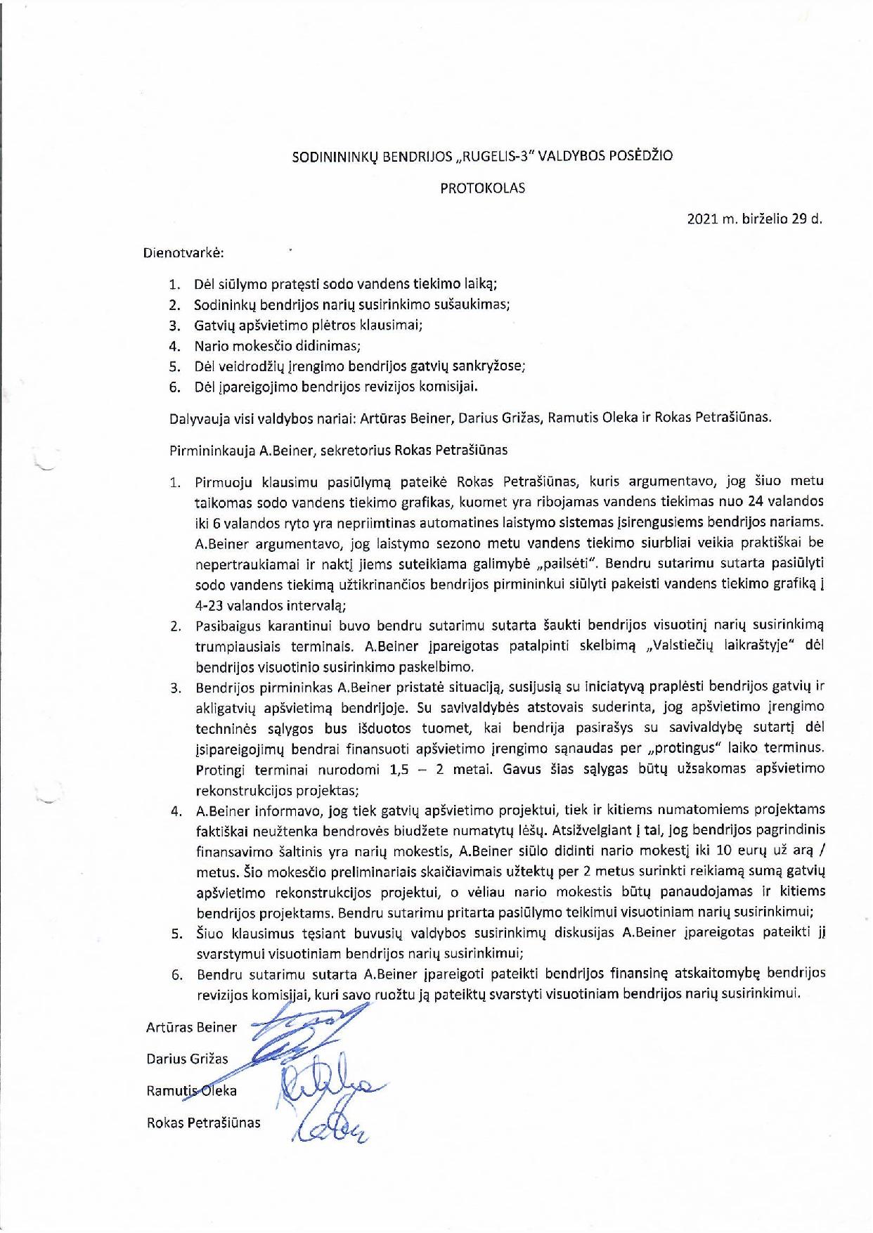 2021 m. birželio 29 d. valdybos posėdžio protokolas SB „Rugelis-3“ Valdyba Kontakto telef.: +370-610-04934 Grįžti atgal