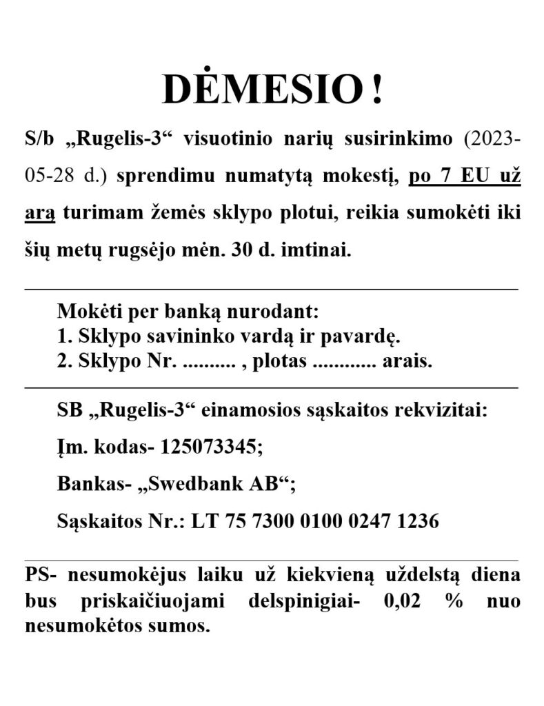Informacija kaip 2023 m. sumokėti žemės sklypo mokestį: